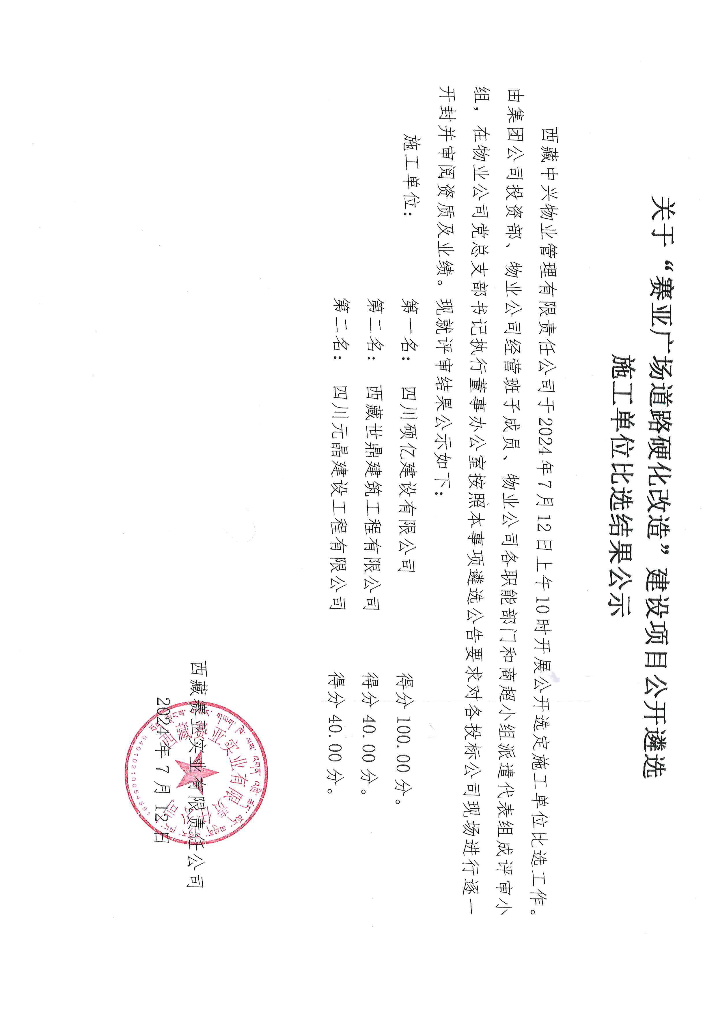 關(guān)于“賽亞廣場道路硬化改造”建設(shè)項目公開遴選施工單位比選結(jié)果公示