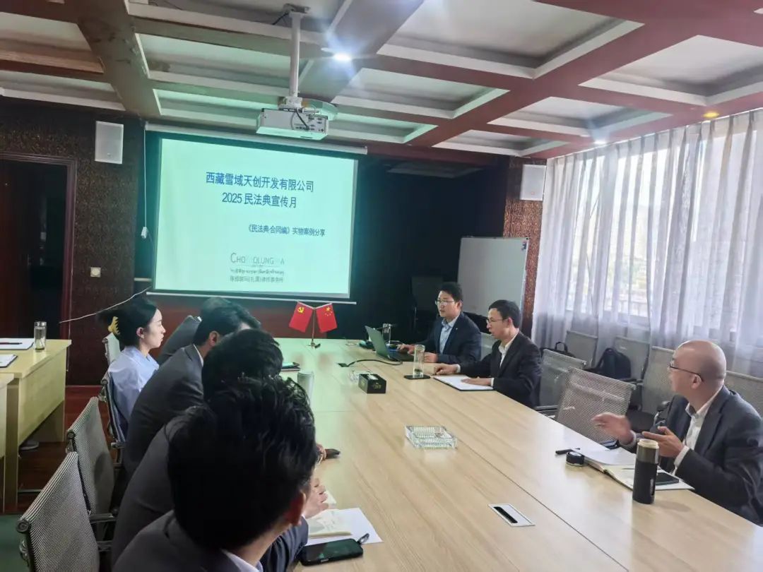 ???????????????????????????????????????????????????????????????????????????為深入貫徹落實(shí)西藏自治區(qū)2025年“民法典宣傳月”工作要求,助力企業(yè)防范法律風(fēng)險(xiǎn)、依法合規(guī)經(jīng)營(yíng)。2025年5月29日雪域天創(chuàng)公司以“民法典進(jìn)企業(yè)”為抓手,邀請(qǐng)珠穆朗瑪律師事務(wù)所格列律師開(kāi)展民法典普法講座,為公司健康發(fā)展提供法治保障。