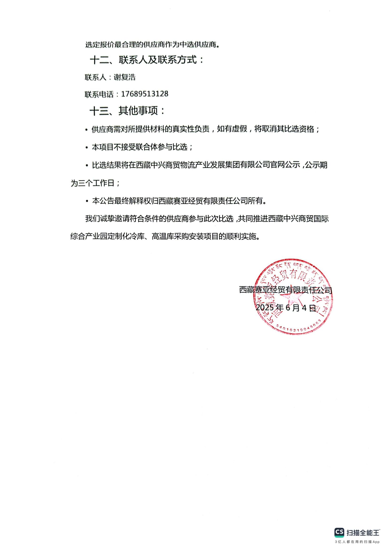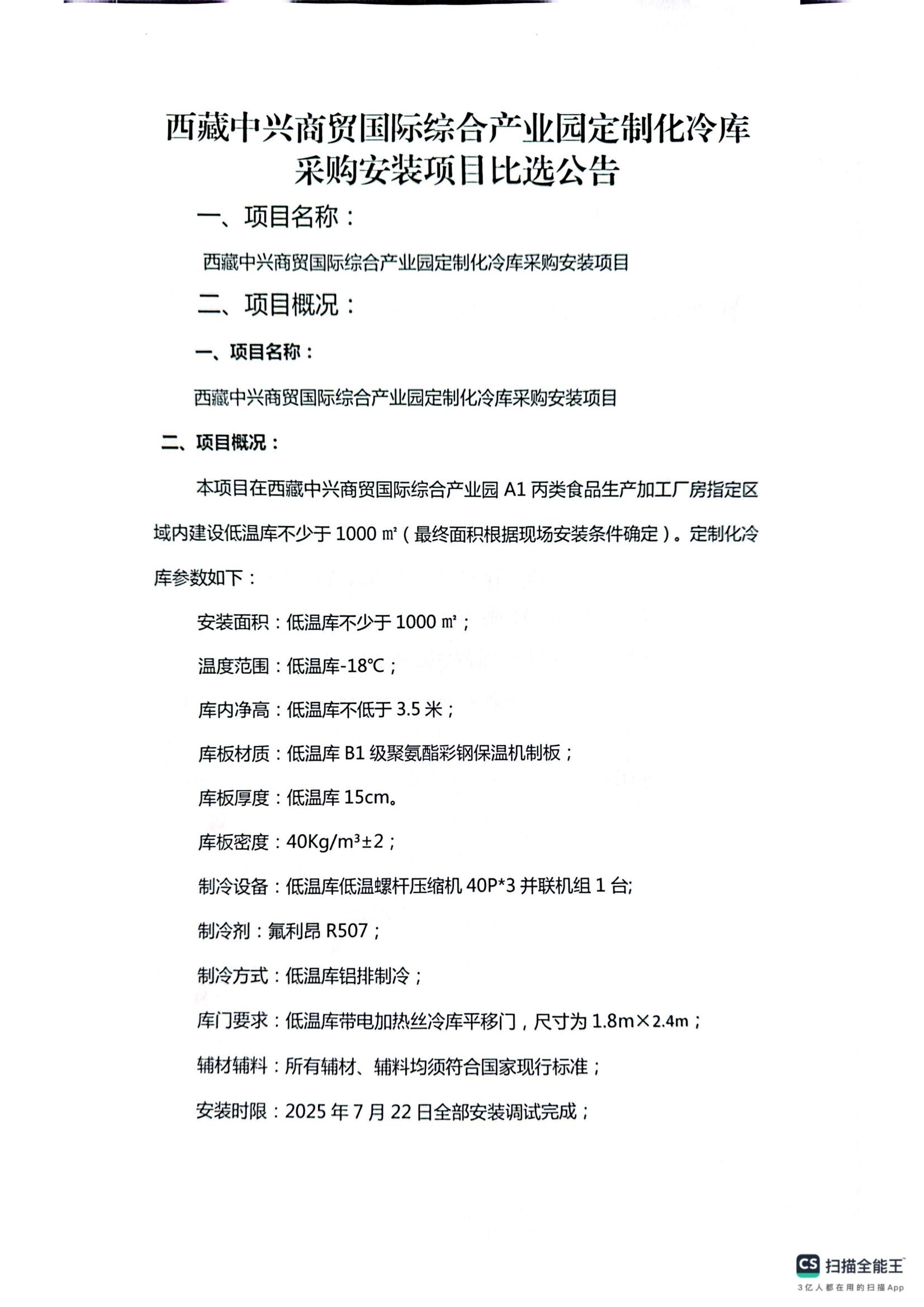 西藏中興商貿(mào)國(guó)際綜合產(chǎn)業(yè)園定制化冷庫(kù)采購(gòu)安裝項(xiàng)目比選公告
