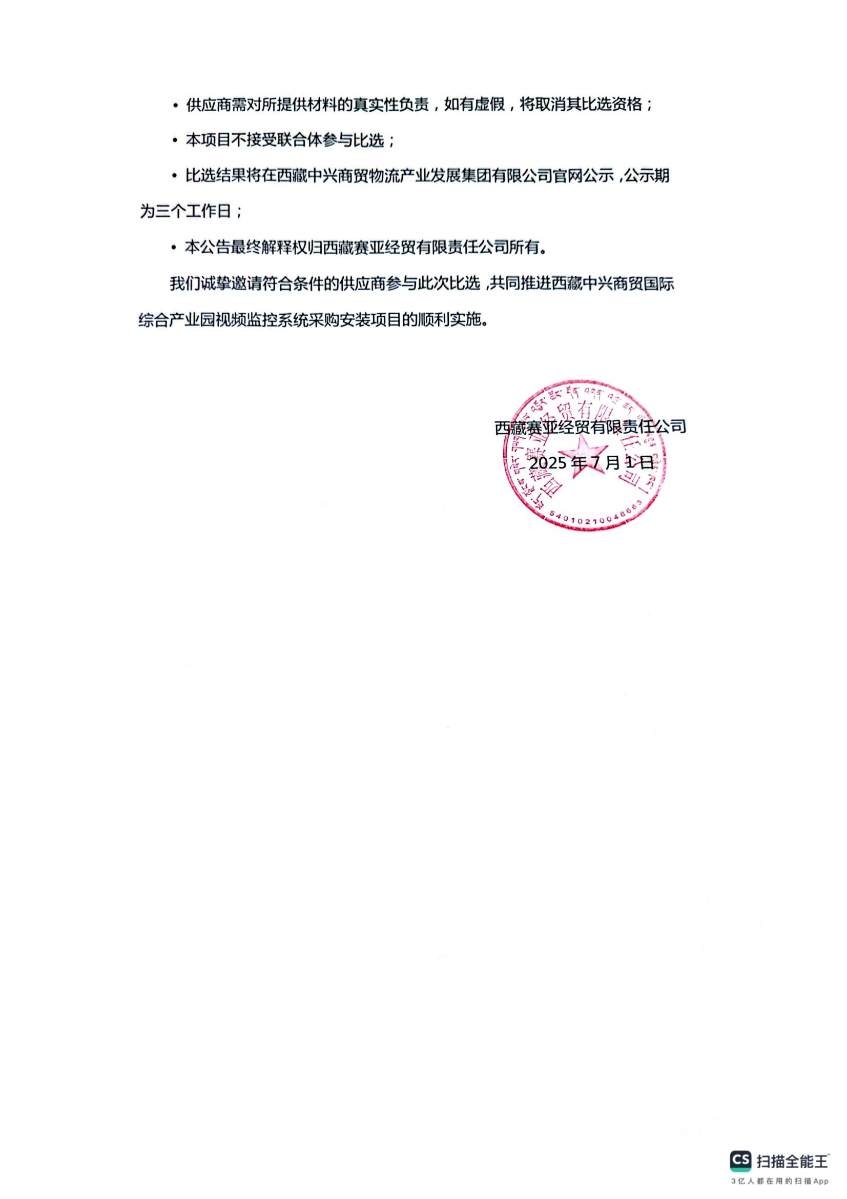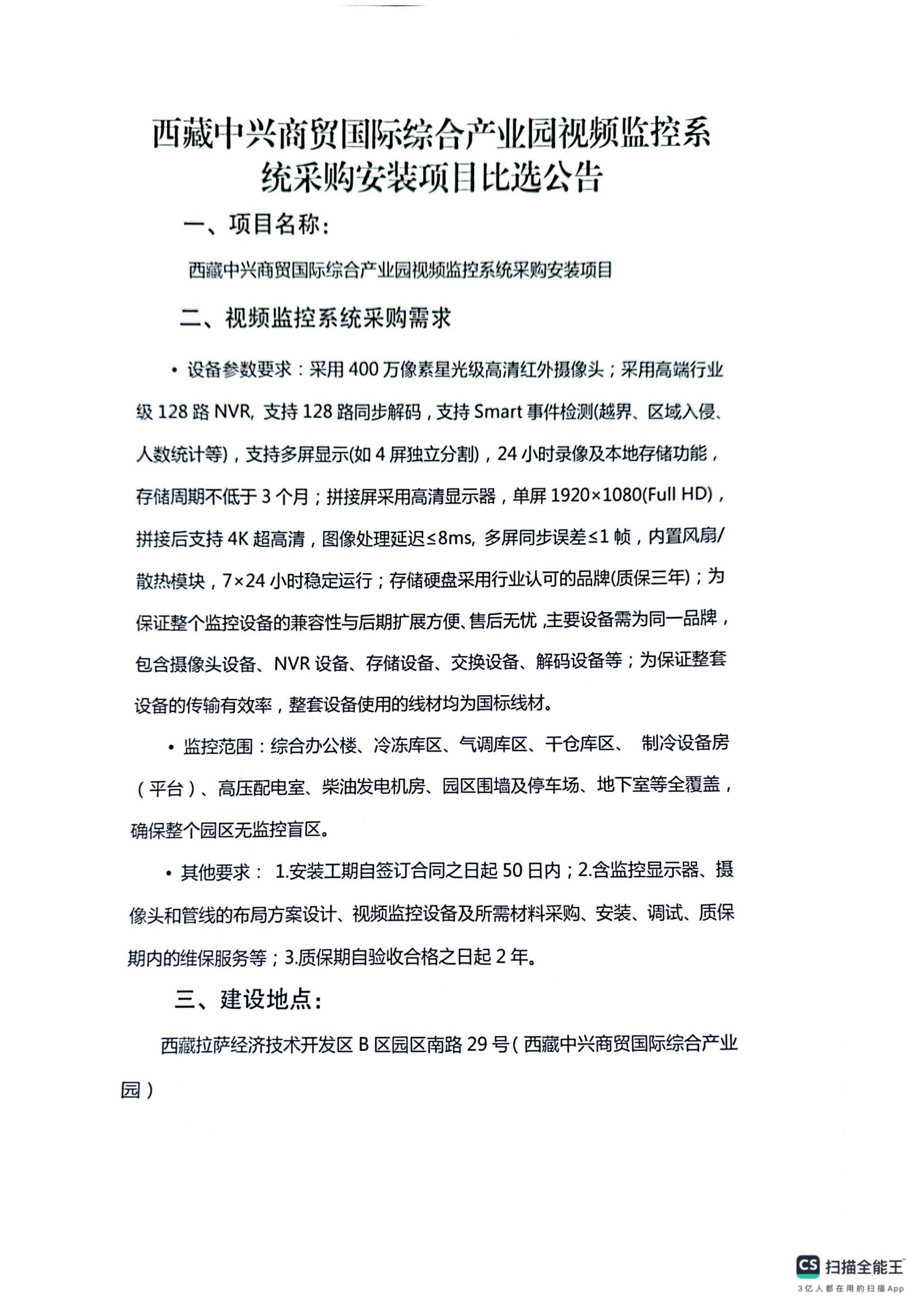 西藏中興商貿(mào)國(guó)際綜合產(chǎn)業(yè)園視頻監(jiān)控系統(tǒng)采購(gòu)安裝項(xiàng)目比選公告