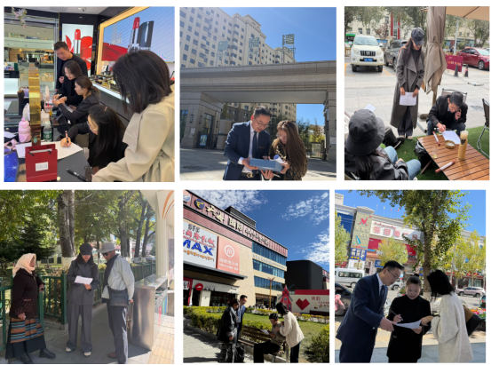 10月21日,調查小組率先前往拉薩市城關區(qū)萬達廣場、特色藏餐館及周邊居民街區(qū);10月22日轉場至西郊天海商業(yè)廣場、拉薩西郊濱河路周邊居民區(qū)域,針對商業(yè)綜合體客流、中青年消費者、居民住戶等不同群體實施分層調查,確保樣本覆蓋的廣泛性與代表性。